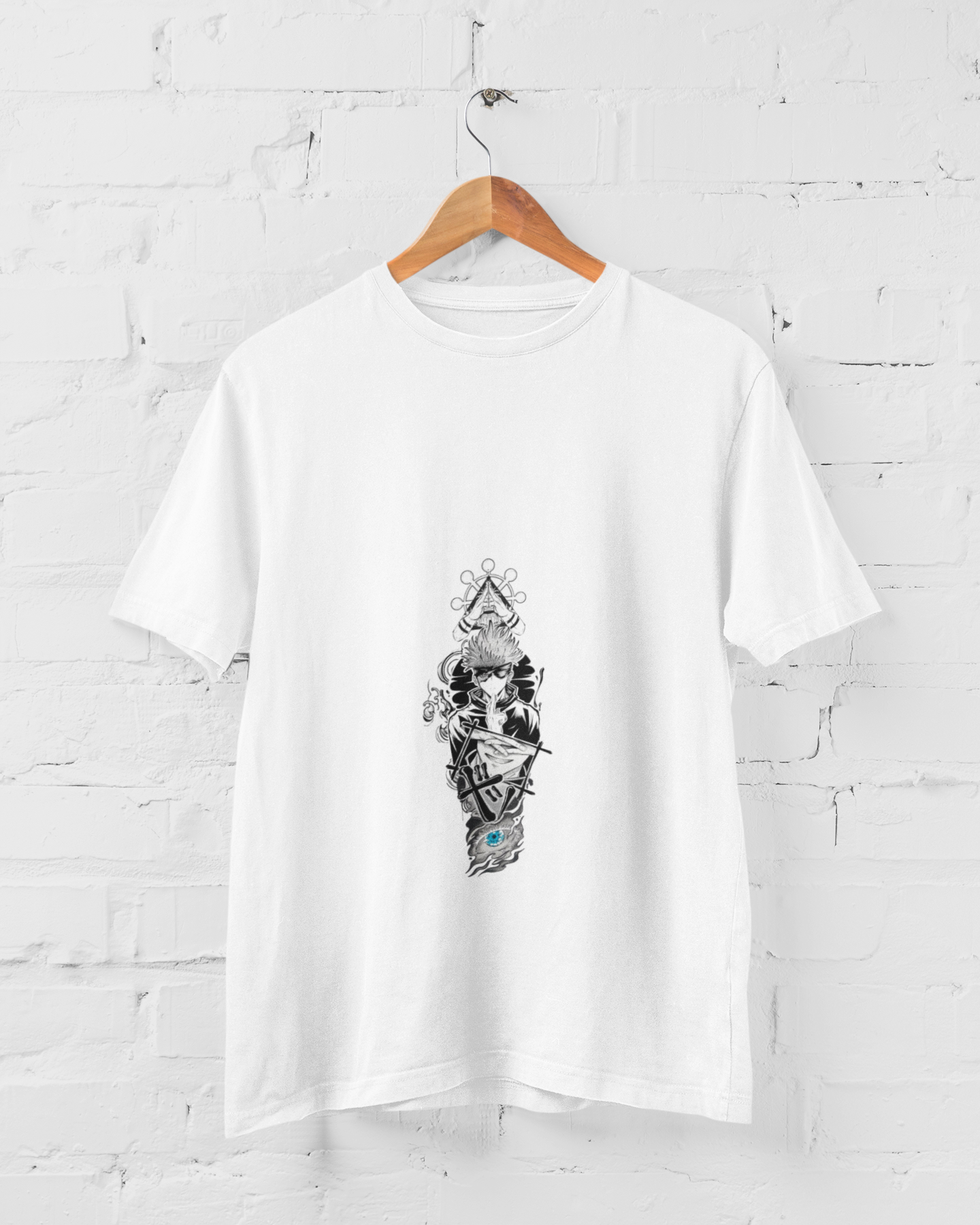 Step into the world of Jujutsu Kaisen with this Gojo Satoru anime graphic t-shirt designed in a symbolic vertical art style. The artwork combines Gojo’s iconic blindfold look with geometric and mystical elements, creating a powerful and modern anime aesthetic. Crafted using premium fabric options, this t-shirt offers a soft, breathable feel with a comfortable regular fit suitable for daily wear. The high-quality print ensures sharp details and long-lasting durability, making it ideal for casual outings, anime events or everyday streetwear. A perfect choice for Gojo Satoru fans who appreciate minimal yet meaningful anime designs.