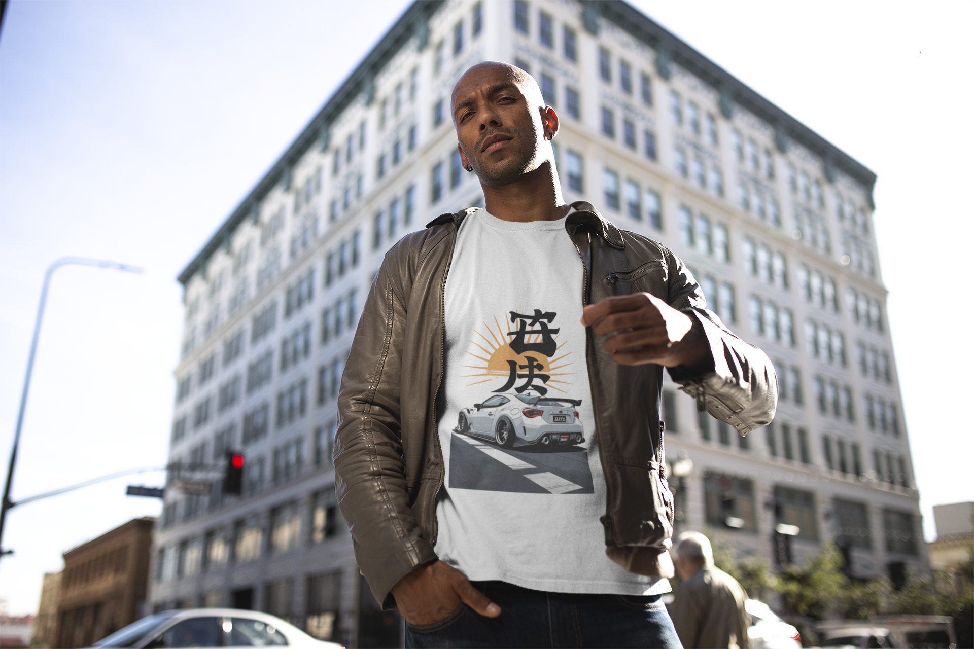 This artwork blends modern automotive design with traditional Japanese symbolism — perfect for those who prefer subtle, meaningful visuals over loud graphics.